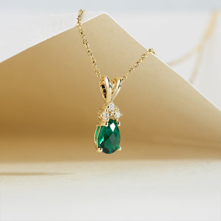 Smaragd-Tropfen in Goldanhänger mit Diamanten Electrah