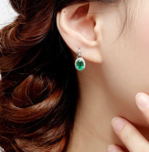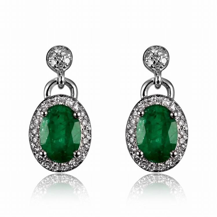 • ● die ovalen tannengrünen Smaragde werden von einem Diamantenhalo umrahmt und auch oben in der Halterung ruht ein runder Diamant in einer Zarge