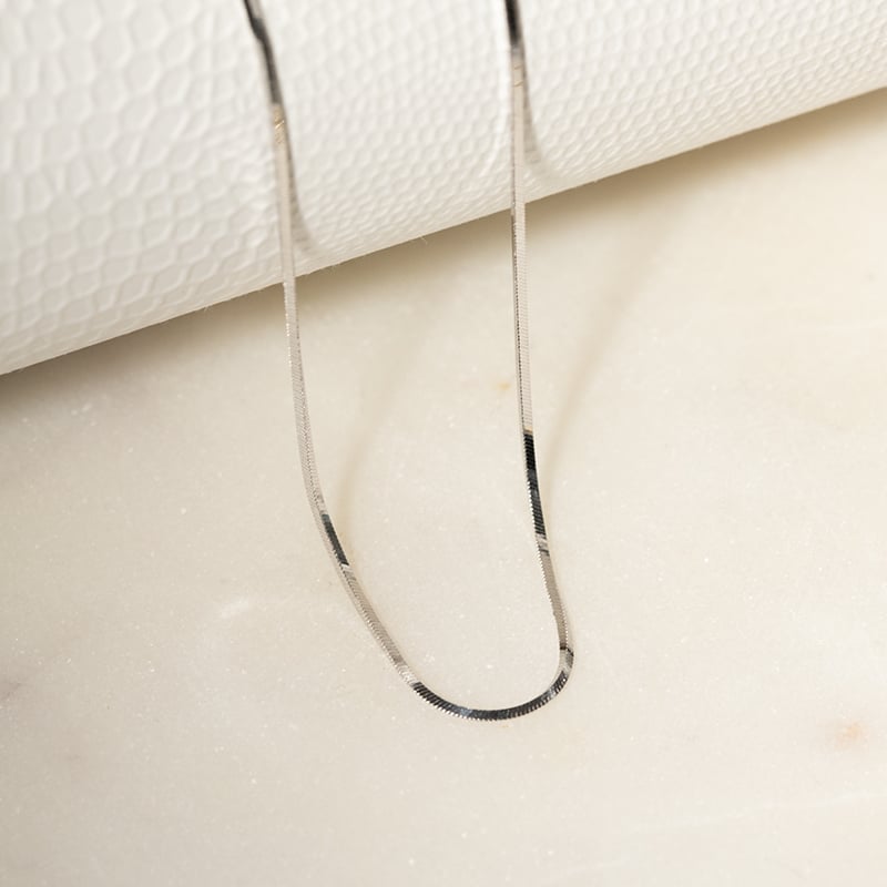 • die Kette aus Weißgold mit glatter Oberfläche besteht aus eng verbundenen Schlaufen
