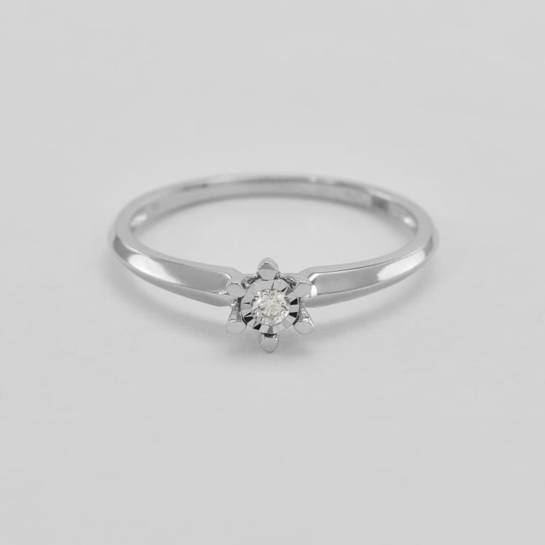 • klassischer Verlobungsring, der von einem eco-friendly Edelstein und einer effektvollen Illusion-Fassung dominiert wird