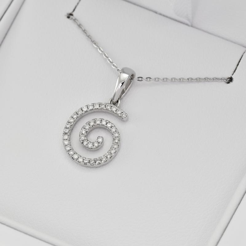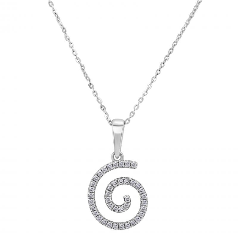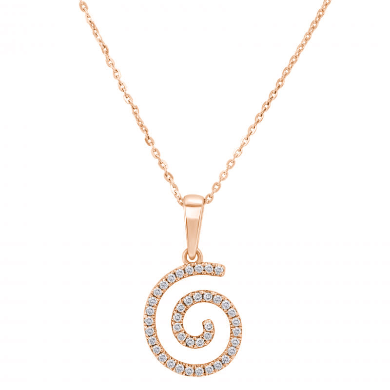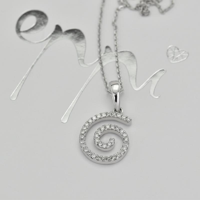 • der spiralförmige Anhänger ist mit Diamanten übersät und erinnert auch an den Buchstaben G