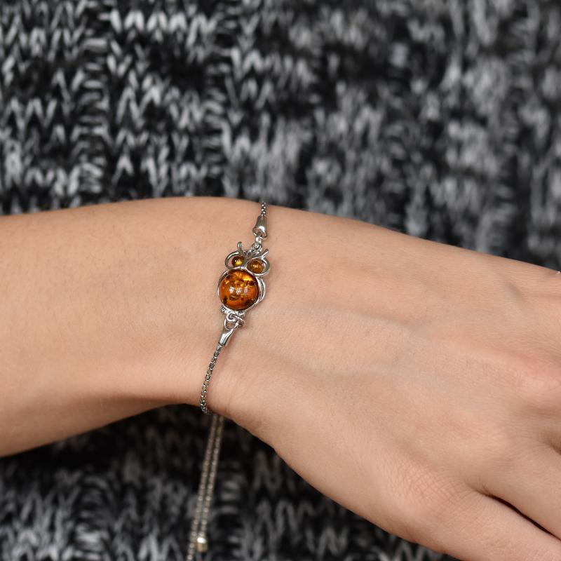 Süße Bernsteineule im silbernen Armband Netti