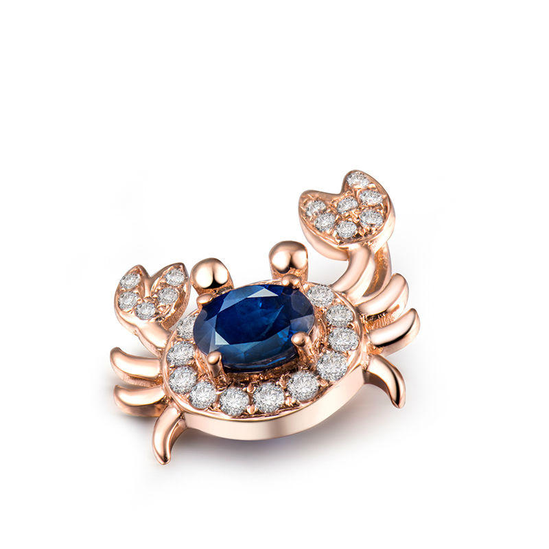 • der Anhänger ist ein diamantenbesetzter Krebs mit einem Körper aus einem blauen Saphir