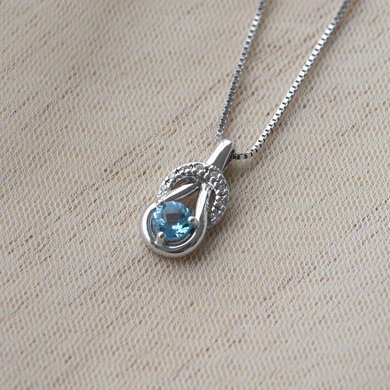 • eine wunderbare Schleife in Silber umfasst einen strahlendblauen Topas