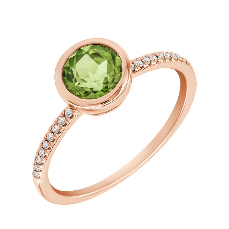Strahlender Goldring mit Olivin und Diamanten Nyusha