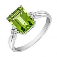 • goldener Verlobungsring mit einem Olivin und Diamanten