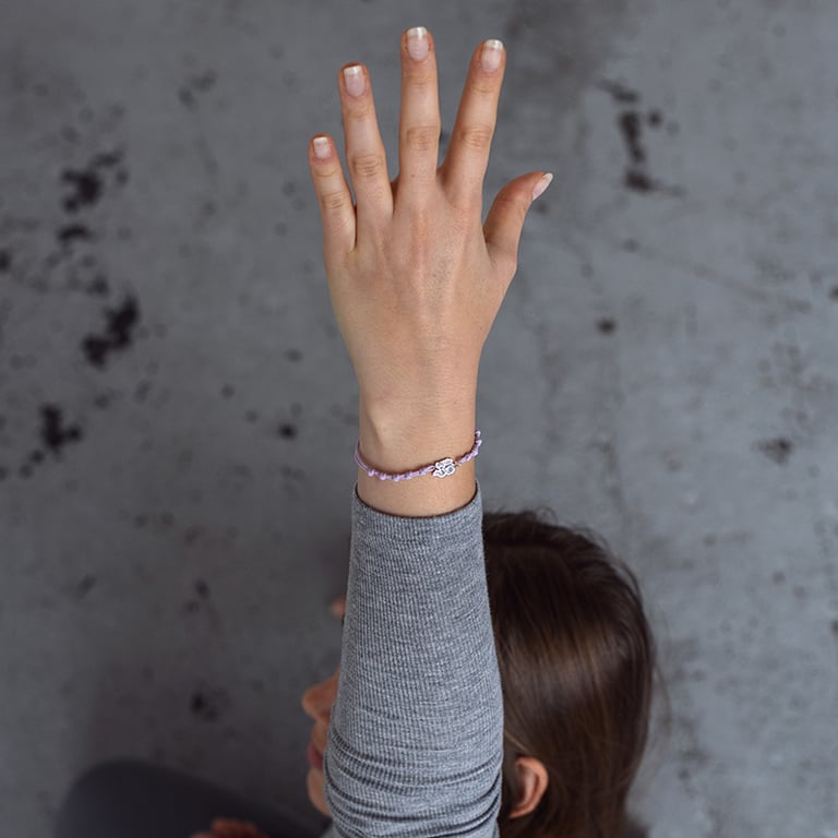 • das Armband ist mit einem Anhänger mit der heiligen Silbe Om verziert, die ein fester Bestandteil der Yogapraxis ist