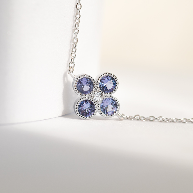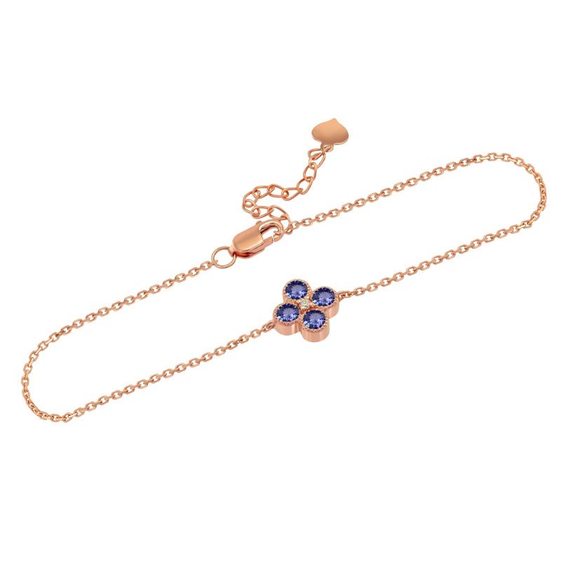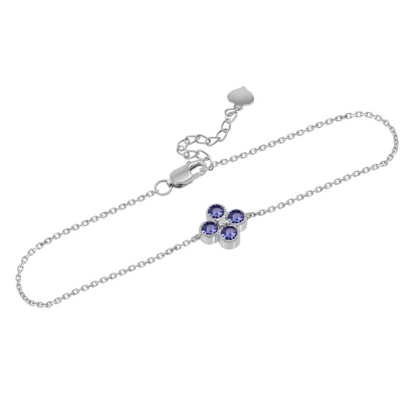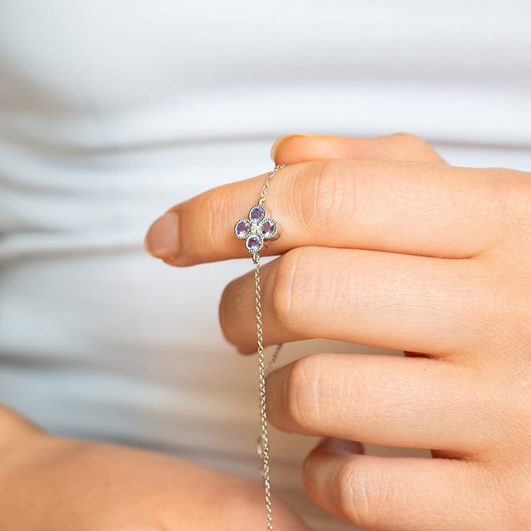 • ein bezauberndes Armband mit einem vierblättrigem Kleeblatt aus lila Tansaniten