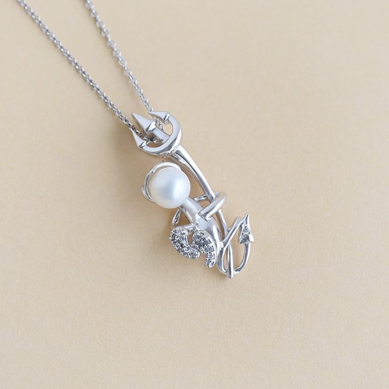 • der kunstvoll gefertigte Teufel wird von einer weißen Perle und Diamanten geschmückt