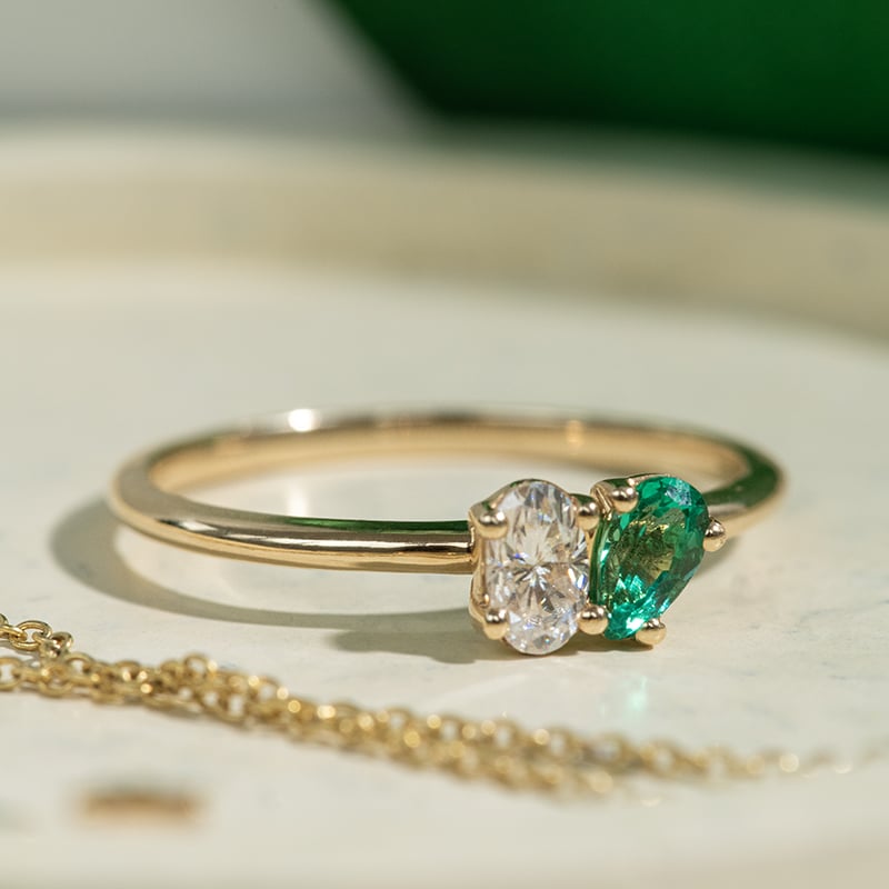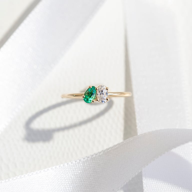 Toi et moi Verlobungsring mit Smaragd und Moissanit Philip
