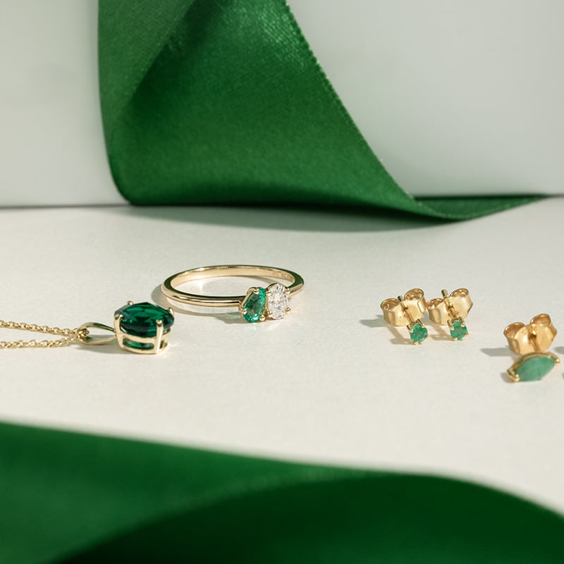 • das Paar Edelsteine, der Smaragd und der Moissanit, symbolisieren Sie beide als Paar