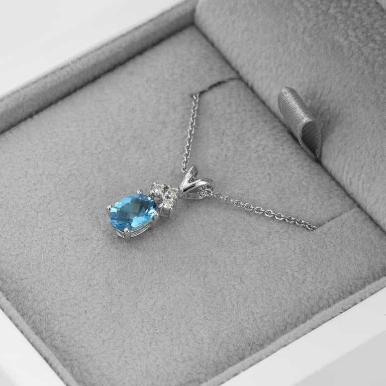 • hier ist ein ovaler Topas in einem eleganten Anhänger mit Diamanten eingefasst