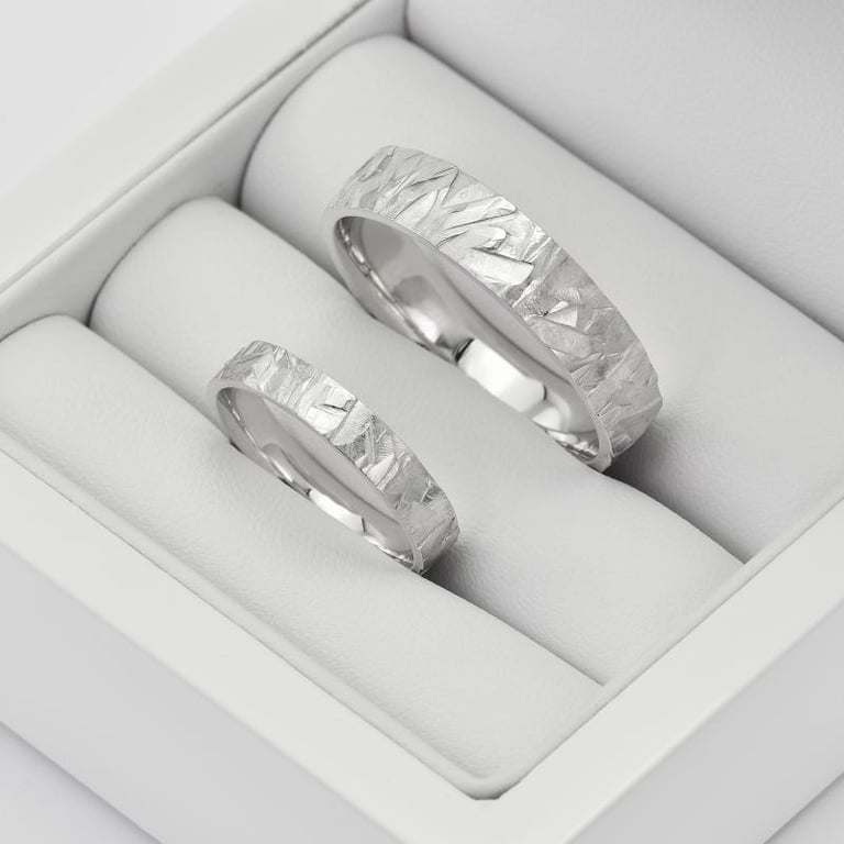 • interessante Eheringe aus Weißgold mit Relief