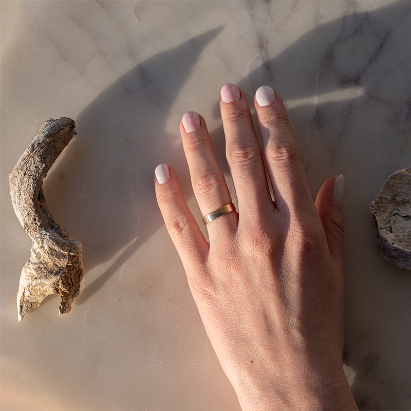 • beide Ringe sind flach, sie haben eine gerade Außenseite und eine leicht gewölbte Innenseite