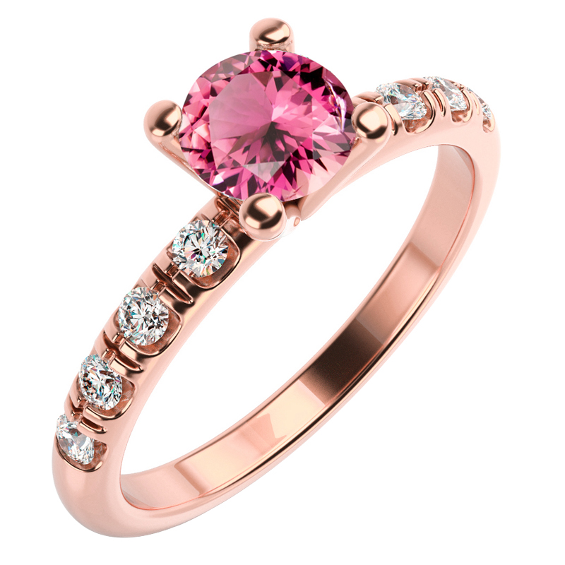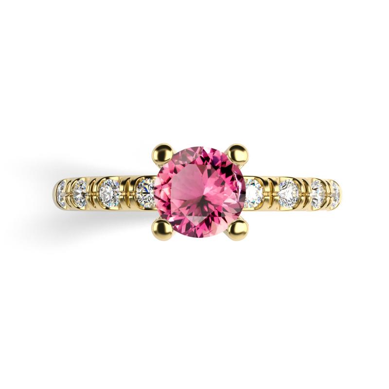 • goldener Verlobungsring mit leuchtendem rosa Turmalin