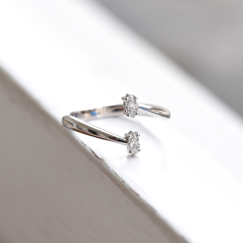 • durch die Krappen-Fassung kommen die Moissanites wunderbar am Ende der geteilten Ringschiene zur Geltung