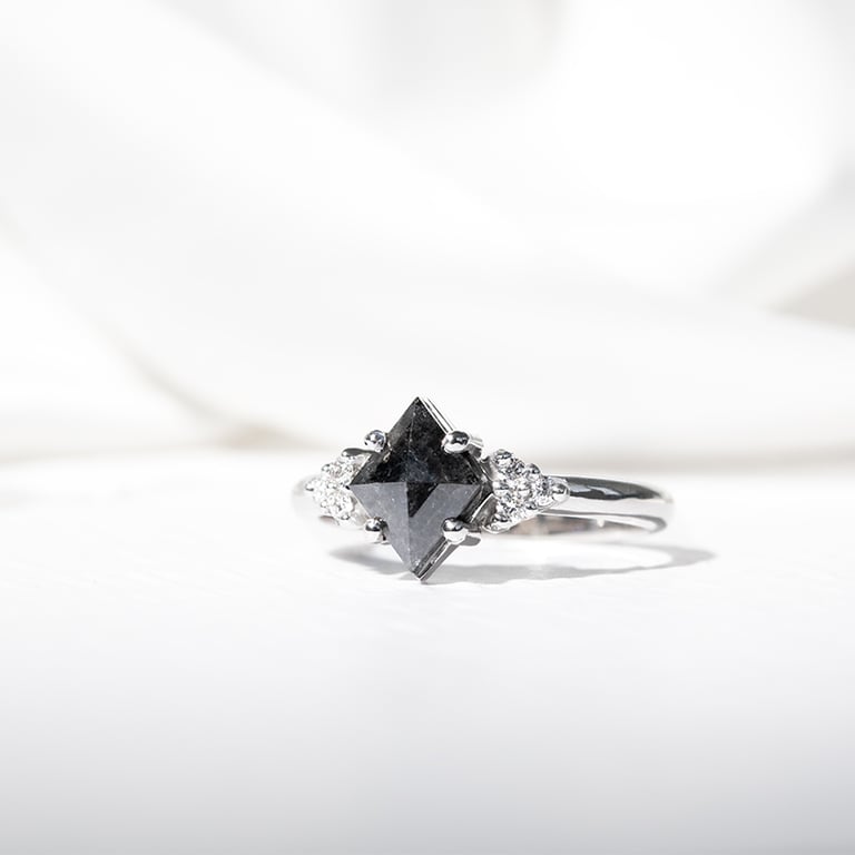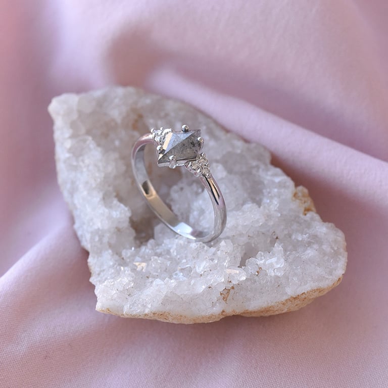 • ein origineller Verlobungsring mit Salt'n'Pepper Diamant und 6 weißen Lab Grown Diamanten