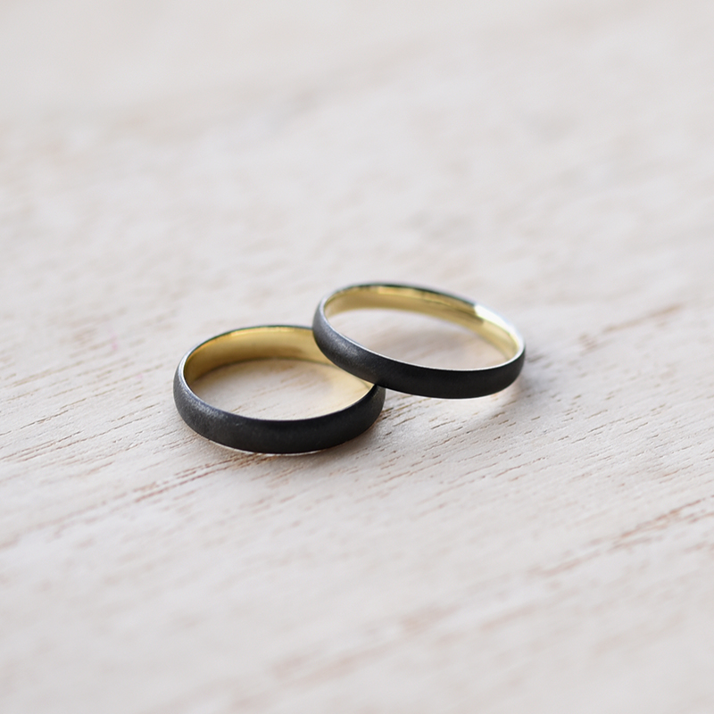 • unkonventionelle Eheringe aus Gold mit Ruthenium beschichtet