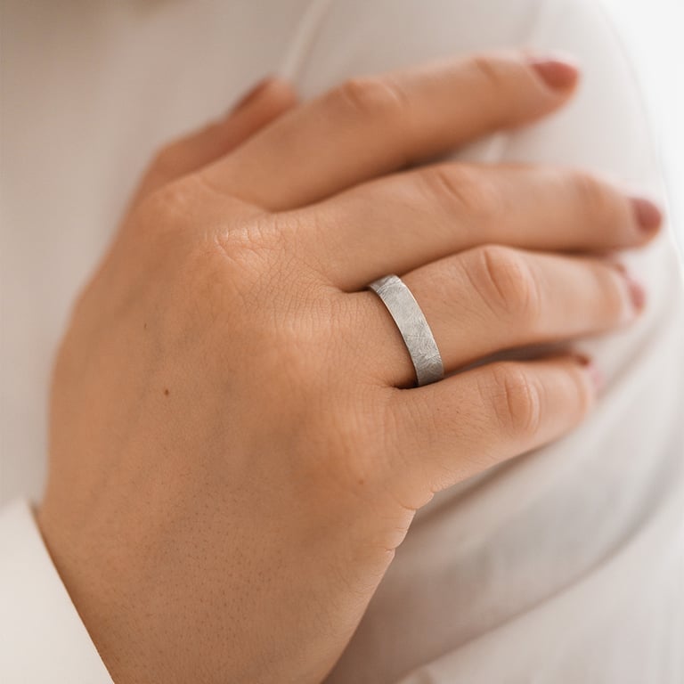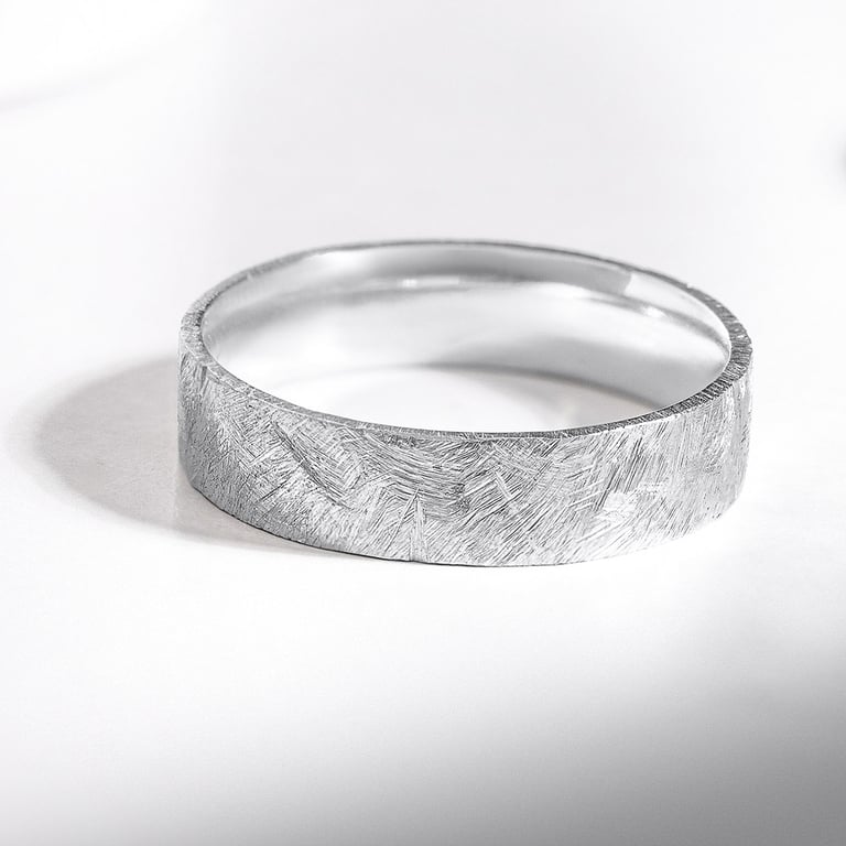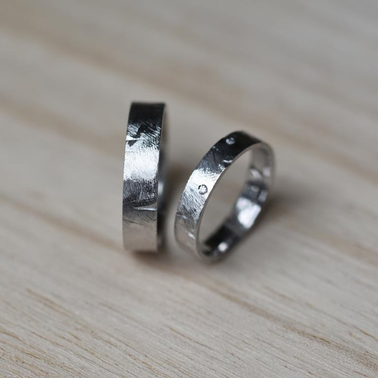• der Glanz der Trauringe aus Platin wird von der gehämmerten und gekratzten Oberfläche verstärkt