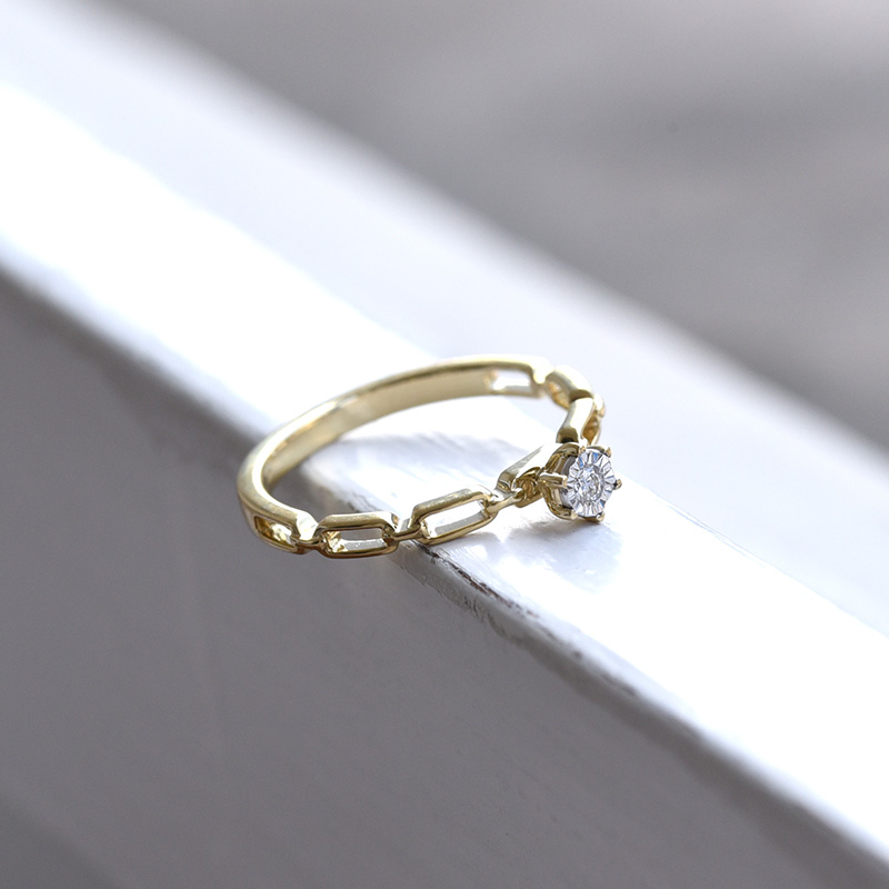 • ein luxuriöser Ring mit originellem Design und glänzendem Diamanten