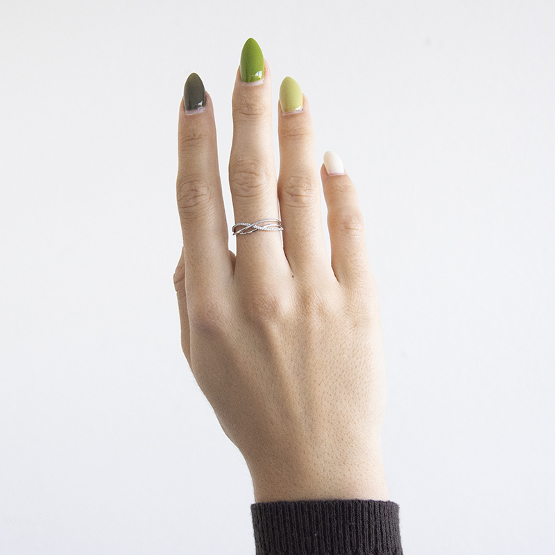 • ein raffiniert geflochtener Ring, der das Funkeln von Lab Grown Diamanten mit dem Glanz von recyceltem Edelmetall verbindet
