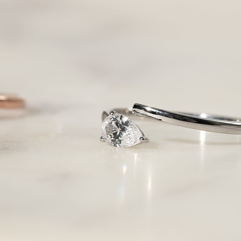 • der offene Ring mit einem natürlichen, tropfenförmigen Diamanten bildet ein perfektes Ganzes