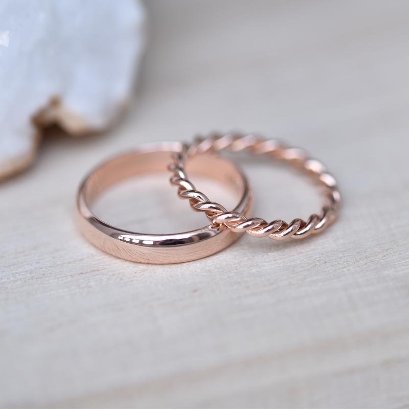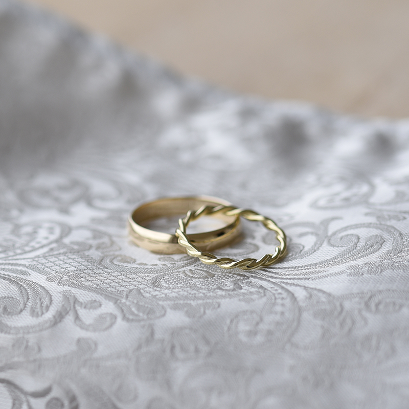 Untraditionelle goldene Trauringe mit Seilmotiv Aase