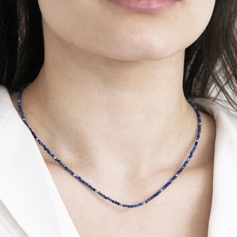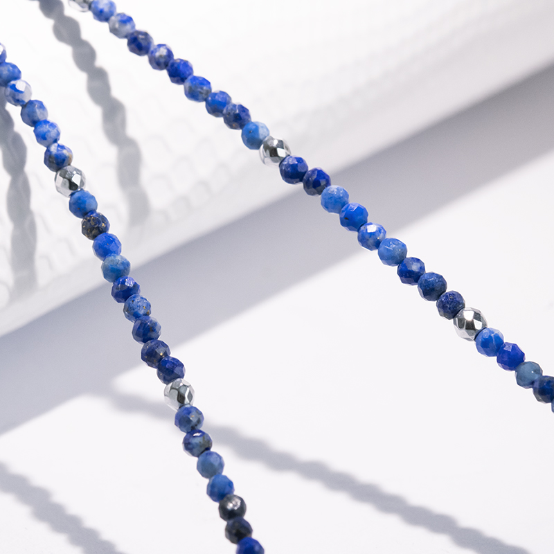 • die Perlen aus Lapislazuli changieren in verschiedenen Blautönen