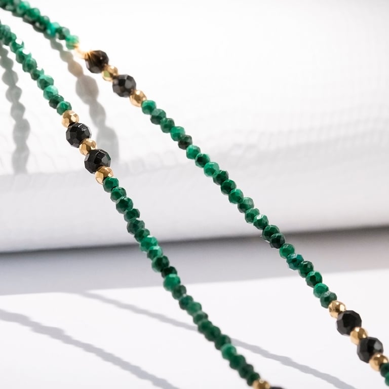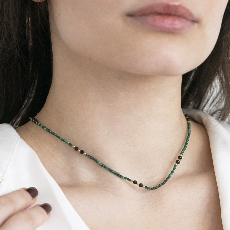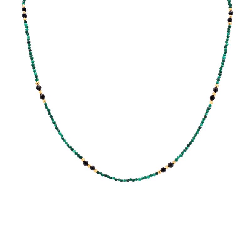 Vergoldete Kette aus Silber mit Malachit-Perlen Leonica