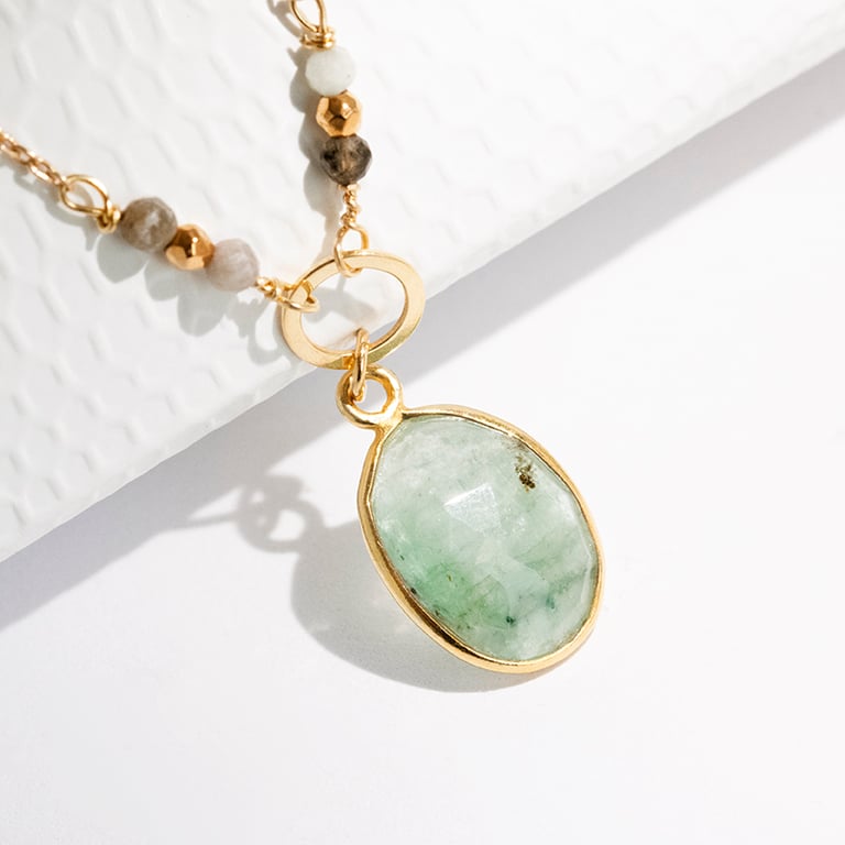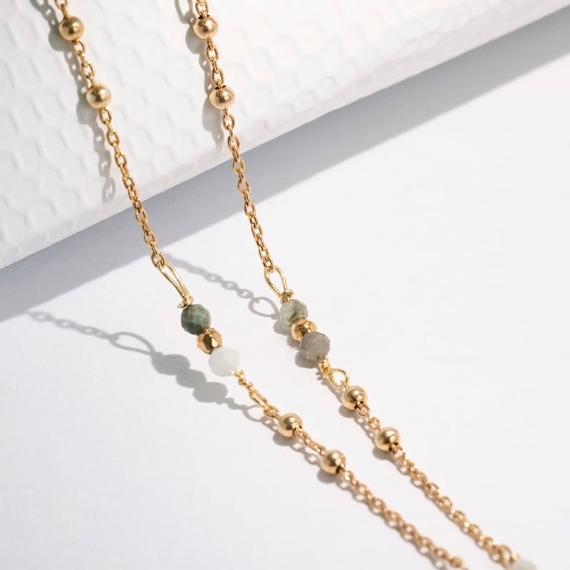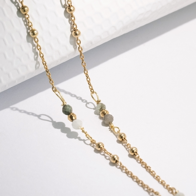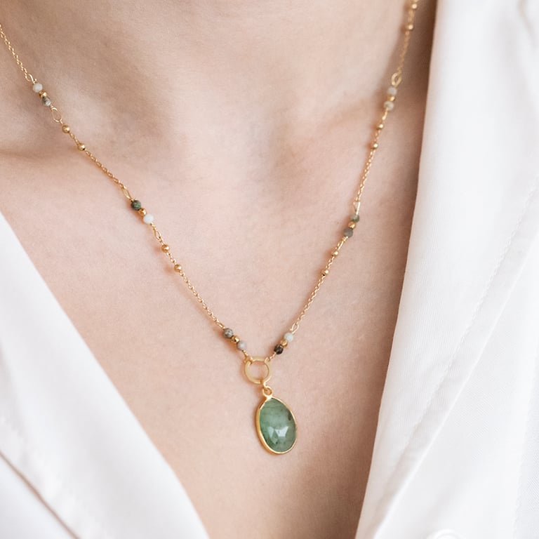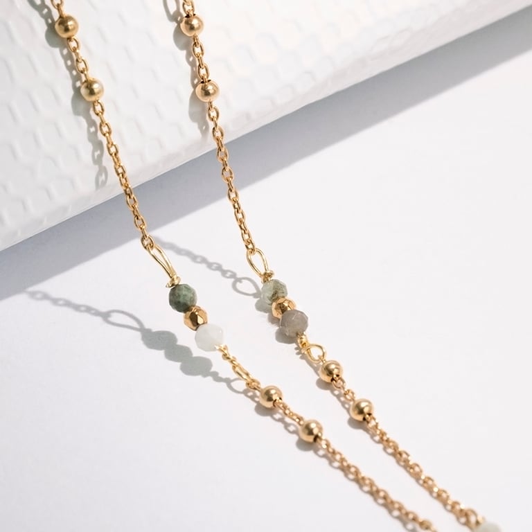 • den Boho-Stil vervollkommnen kleine Smaragd-Perlen und vergoldete Hämatith-Kugeln