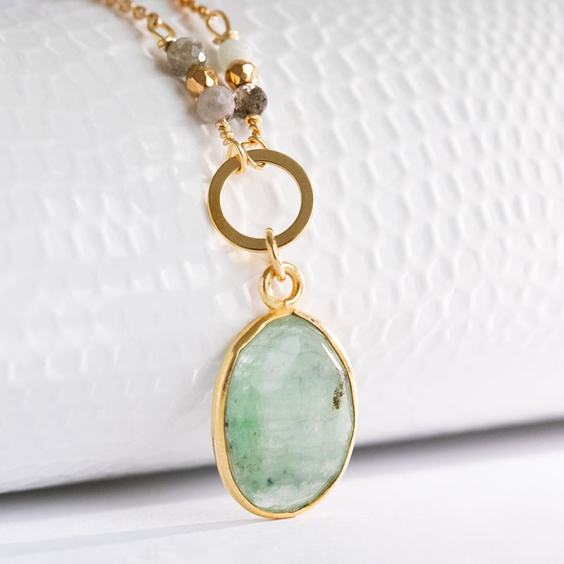 • die zarte Kette schmückt ein unregelmäßig ovaler grüner Smaragd-Anhänger