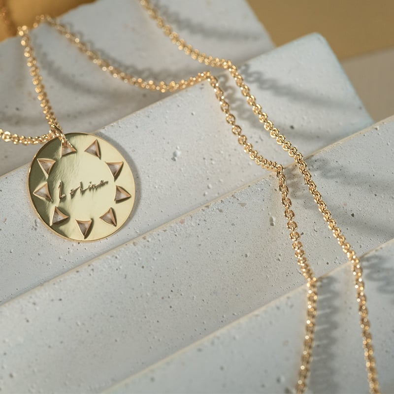 • zarter minimalistischer Anhänger mit Sonnenmotiv aus Silber mit Vergoldung