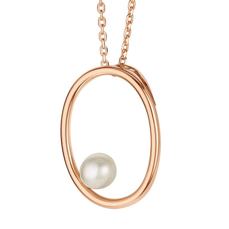• der ovale Anhänger ist mit einer weißen Naturperle besetzt