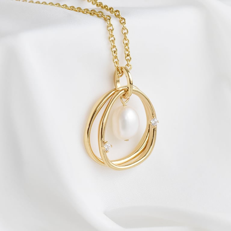 Vergoldeter Anhänger mit Perle und Zirkonia Kine