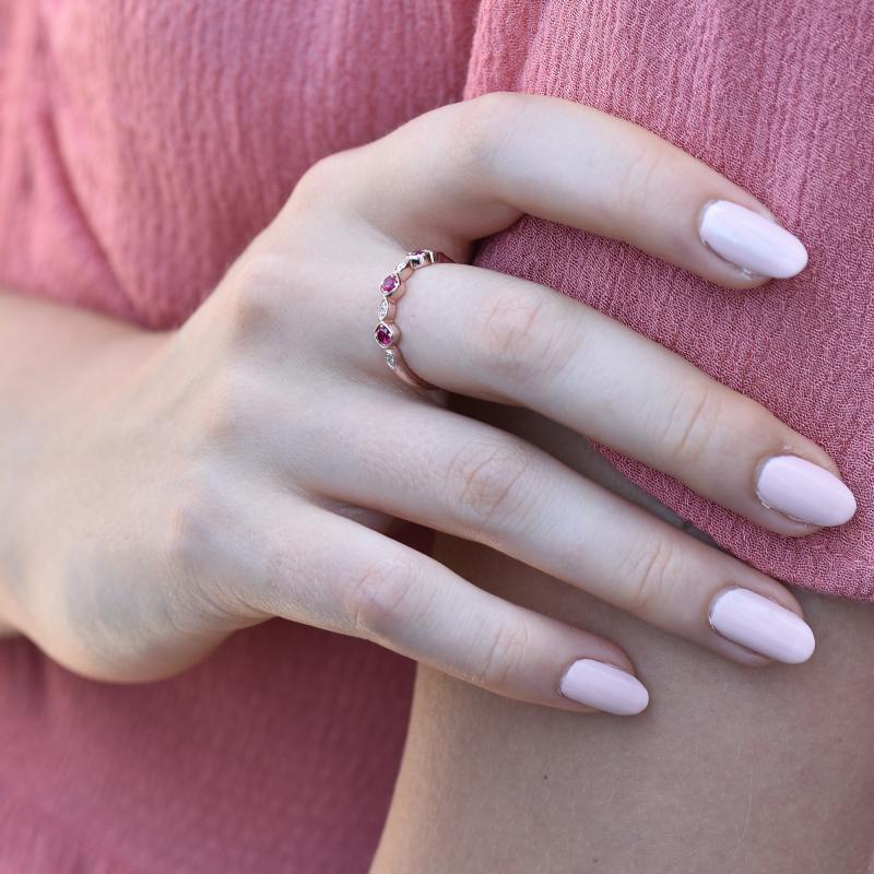 • Zirkone und Rubine wechseln sich ab in diesem Eternity-Ring