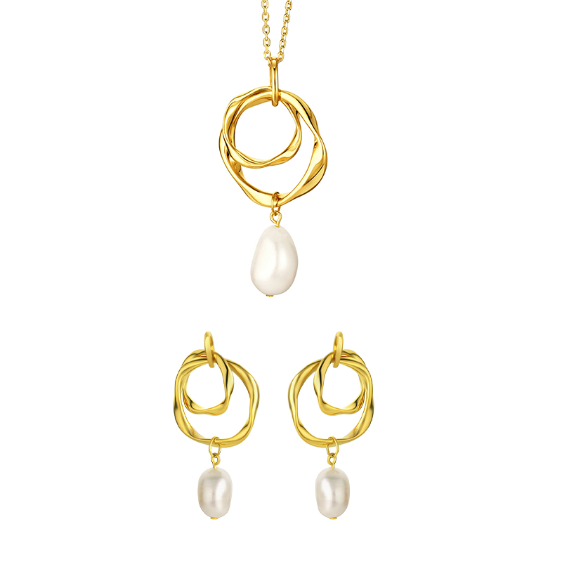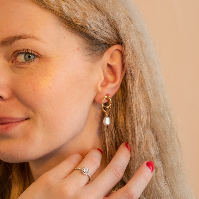 • verschlungene organische Ringe mit hängenden Perlen schaffen ein einzigartiges Design