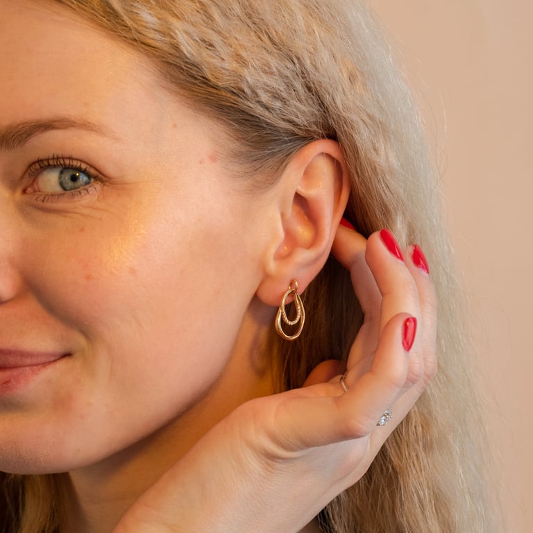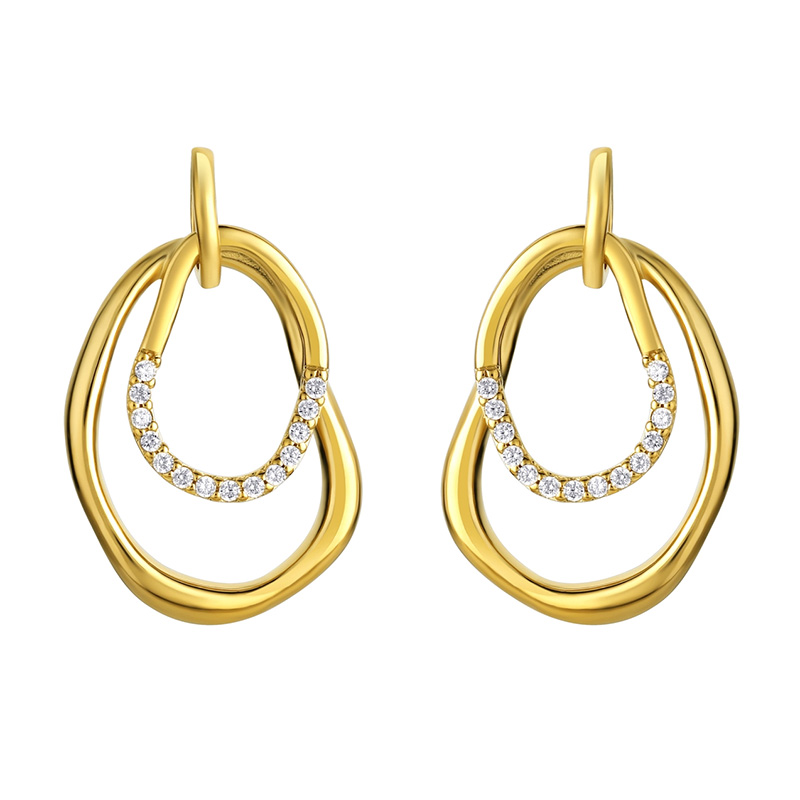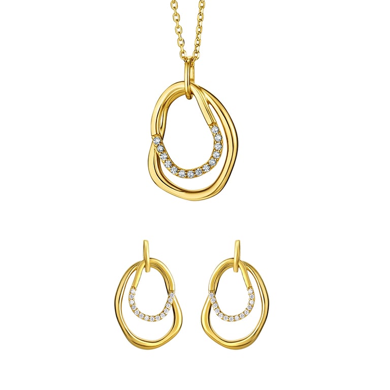 • die Ohrringe und der Anhänger bestehen aus einem Paar organischer Creolen, die mit Zirkonia besetzt sind