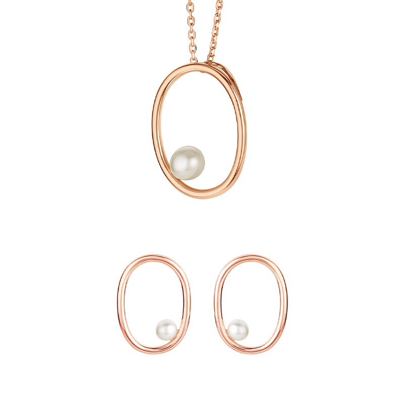 • trendiges Set aus Ohrringen und Anhänger aus rosévergoldetem Silber