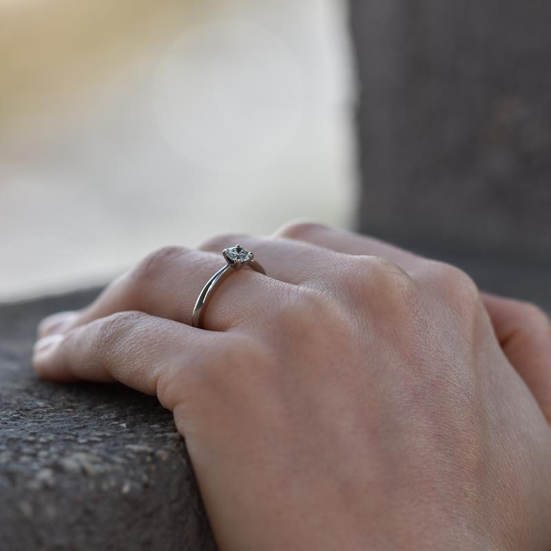 • klassischer eleganter Verlobungsring mit einem Diamanten als Solitär in vier Krappen, was ihm ein eckiges modernes Aussehen verleiht