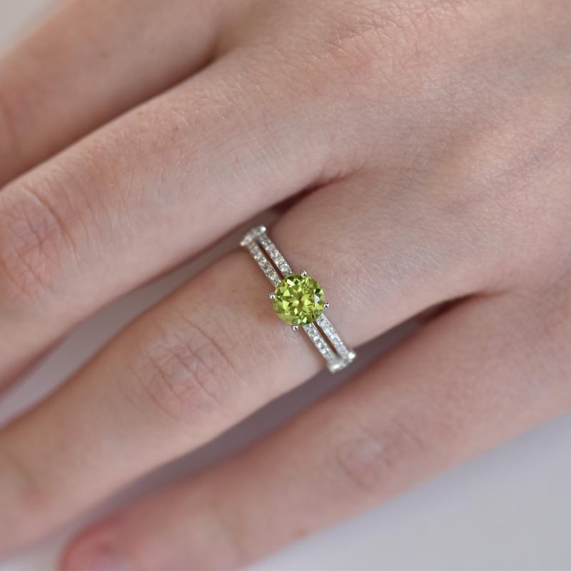 Verlobungsring aus Gold mit Olivin und Diamanten Delaine