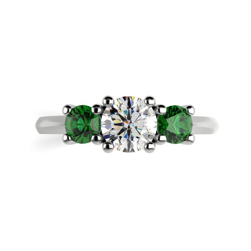 Verlobungsring aus Platin mit Diamant und Smaragden Rita