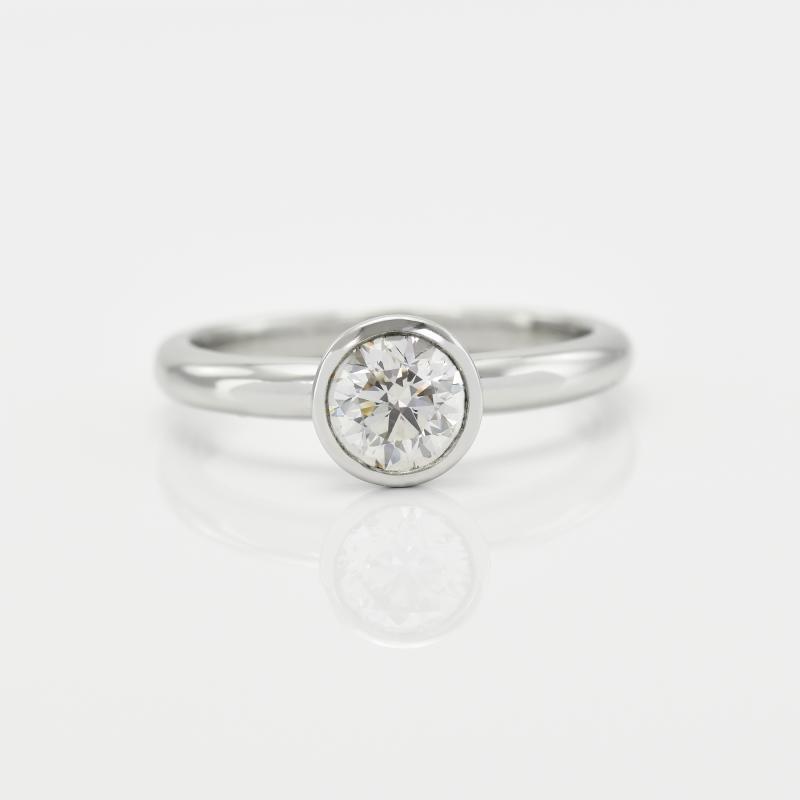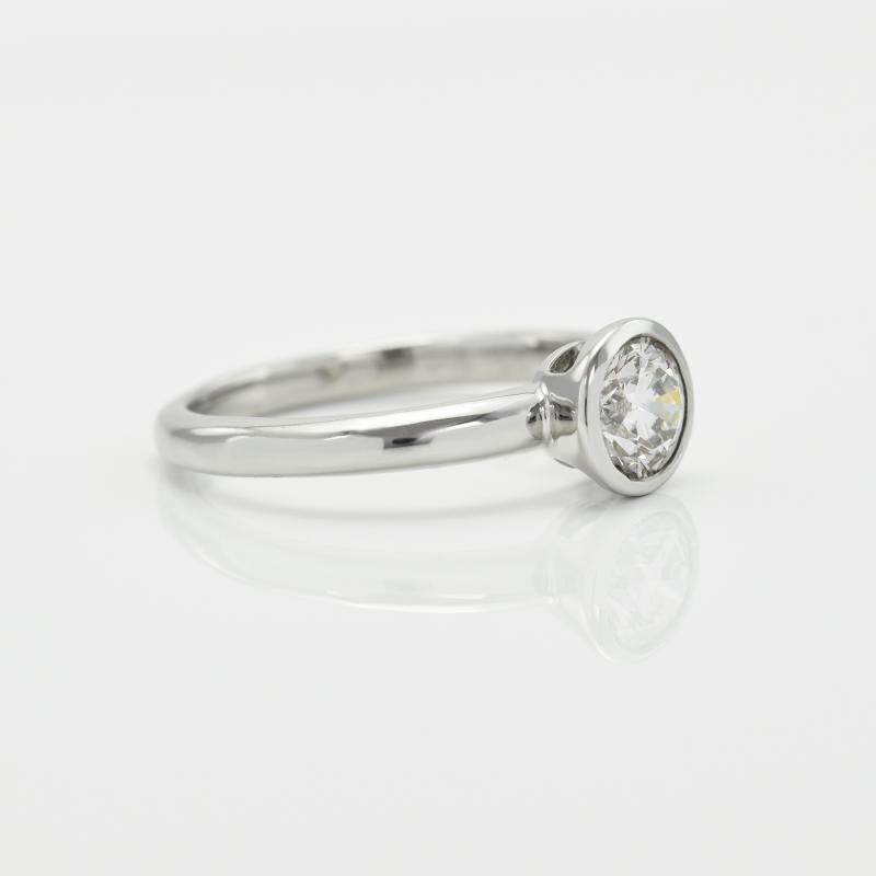 • dieser Platinring hält den Diamanten in einer Bezelfassung besonders gut fest