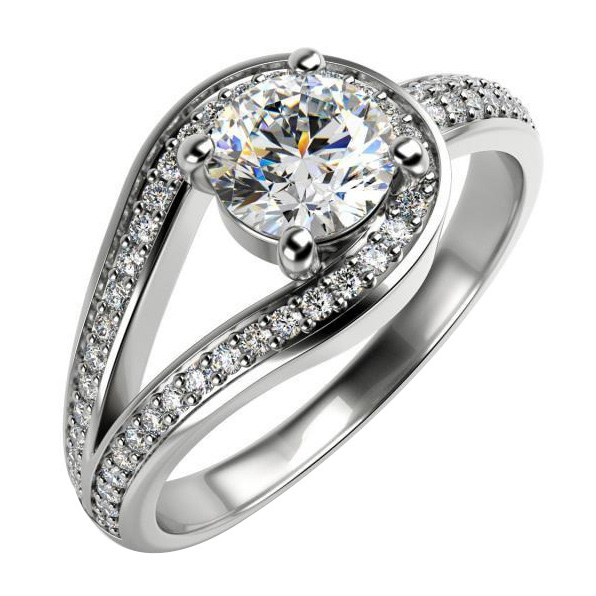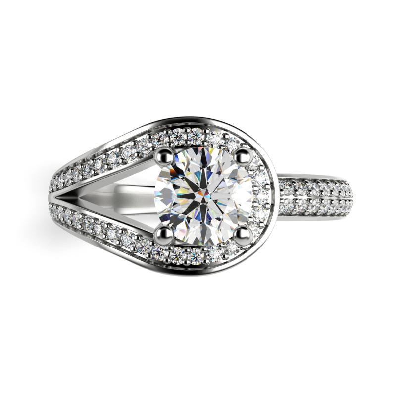 • die doppelt mit Diamanten besetzte Ringschiene lässt den Ring zu einem Spektakel an Feuer und Glitzern werden