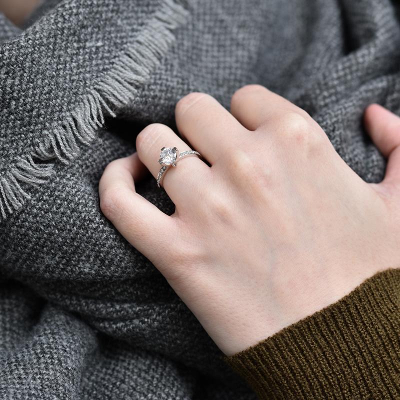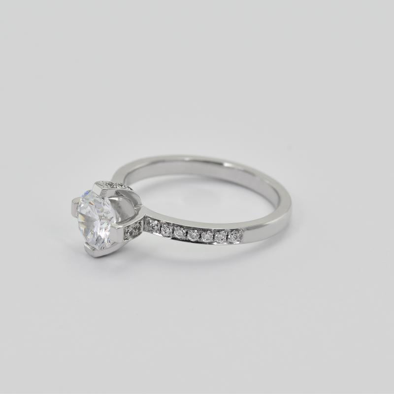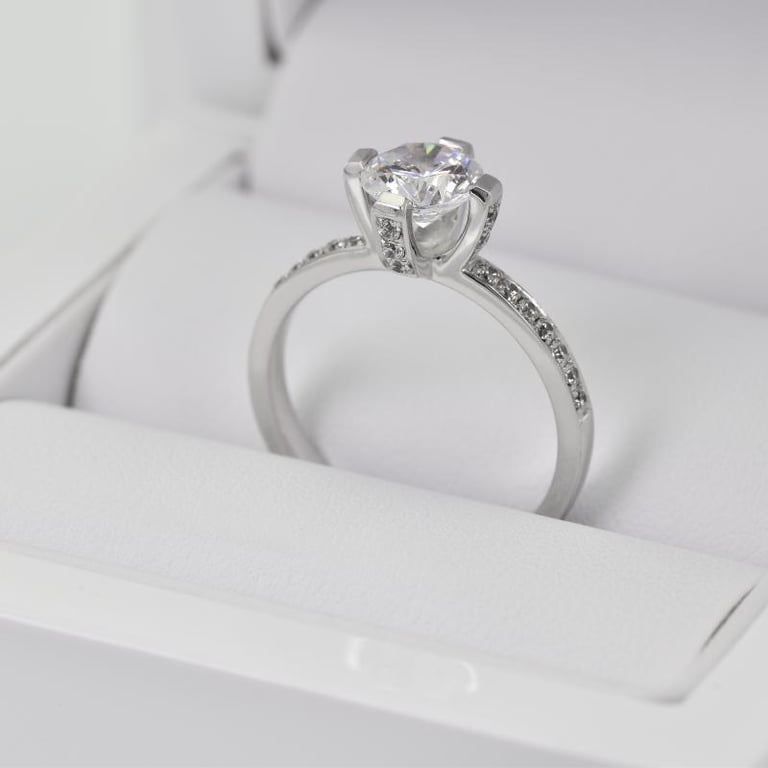 • der Ring aus Platin hat raffinierte Details wie eine diamantenbesetzte Krappenfassung
