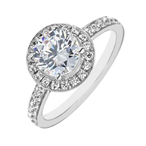 • der große Diamant wird von einem Halo aus Diamanten eingefasst