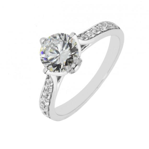 • ein runder Diamant und eine diamantbesetzte Ringschiene sind ein Klassiker bei den Verlobungsringen