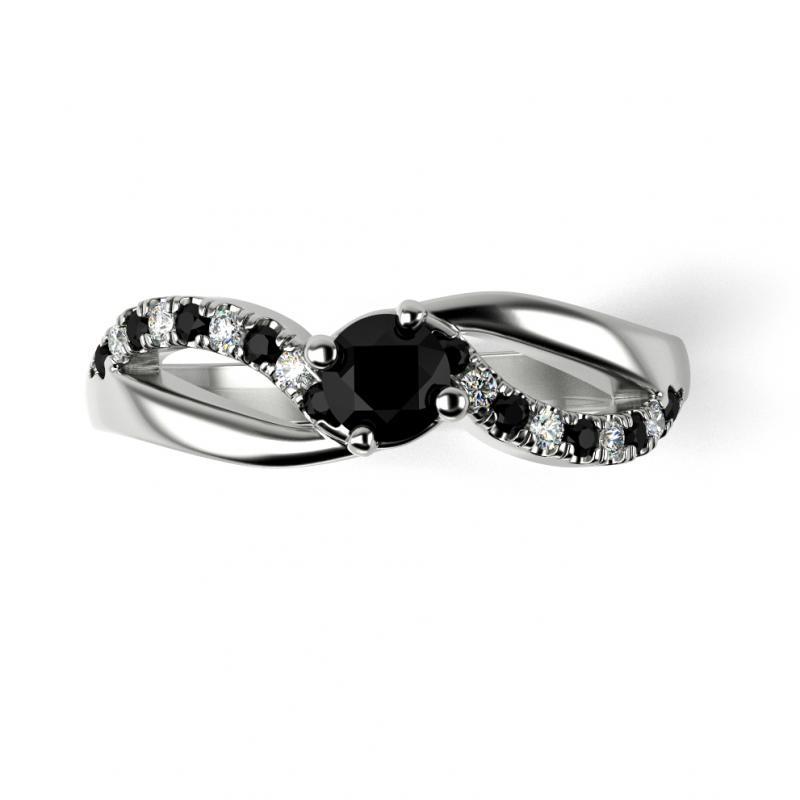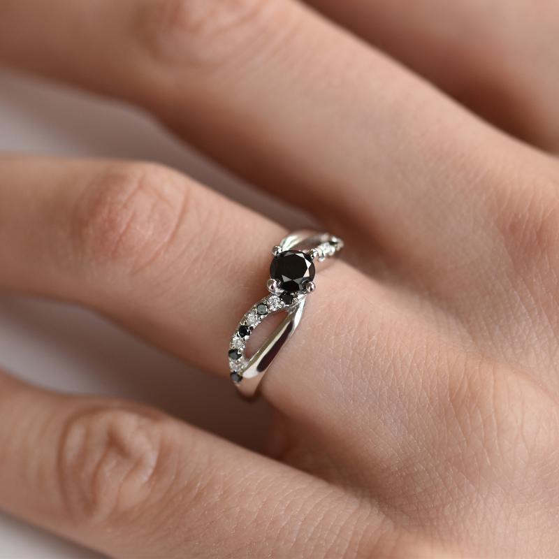 Verlobungsring aus Platin mit schwarzen und weißen Diamanten Ewie