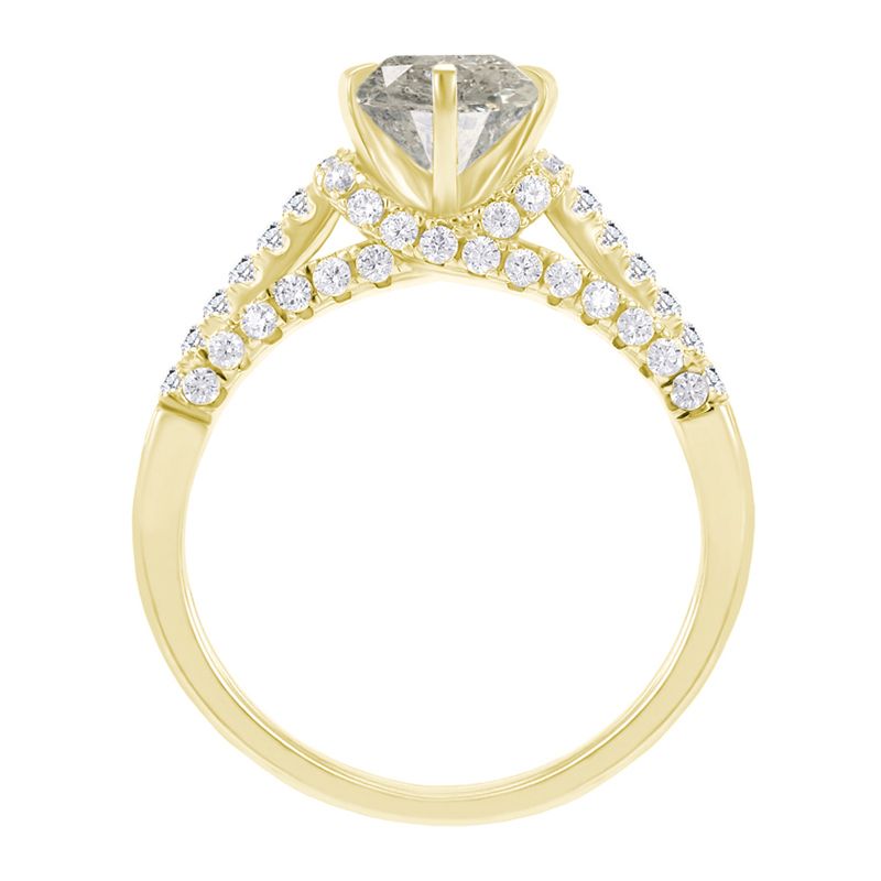 Verlobungsring im Halo-Stil mit einem Salt and Pepper Diamanten Heshmy