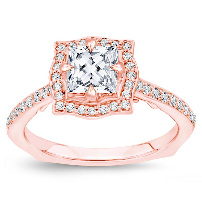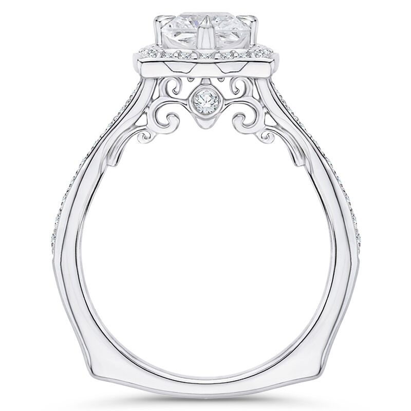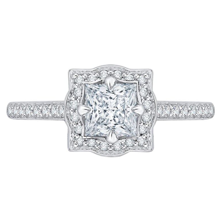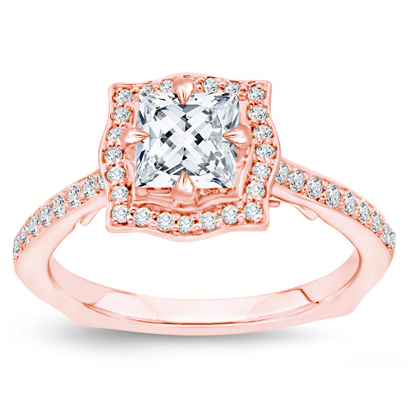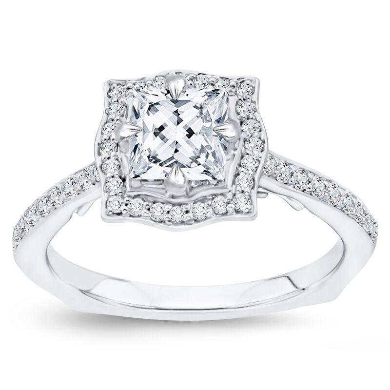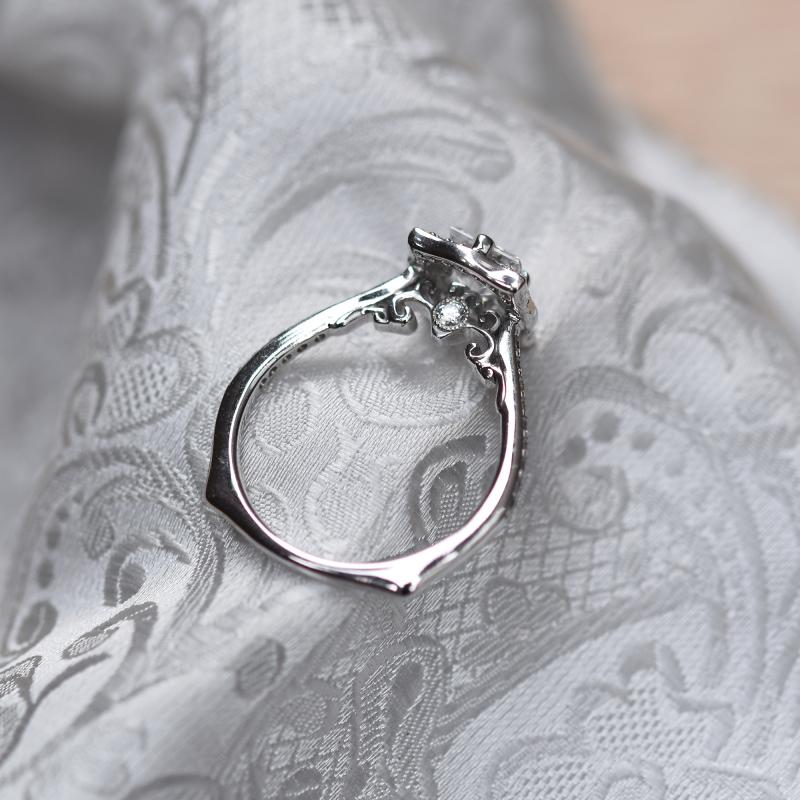 • der Diamant im Prinzessschliff entfacht sein besonderes Feuer in einem Halo aus Diamanten