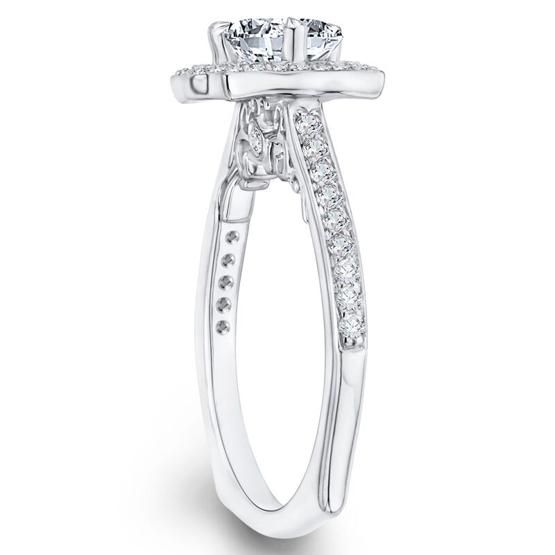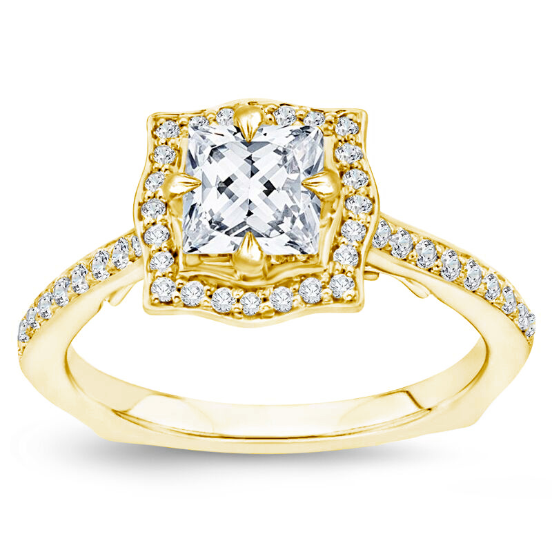 • die Halofassung ist in einer extravaganten rund-eckigen Form in Gold gehalten, die Farbe des Goldes oder Platin ist wählbar